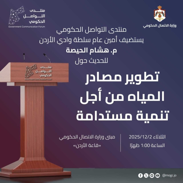 منتدى التواصل الحكومي يستضيف أمين عام سلطة وادي الأردن غدا