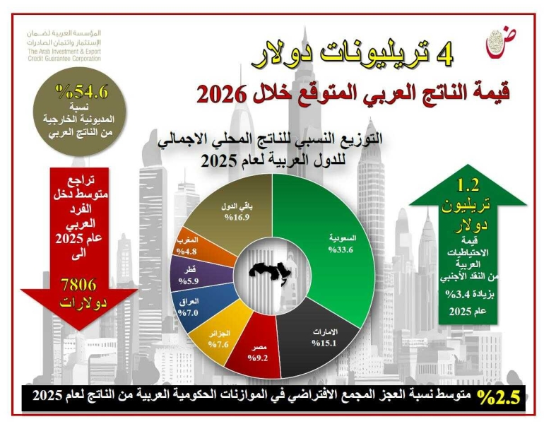 "ضمان الاستثمار": 4 تريليونات دولار القيمة المتوقعة للناتج العربي لعام 2026