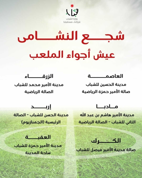 "الشباب": شاشات عملاقة بالمدن الرياضية لعرض مباريات المنتخب الوطني ببطولة كأس العرب 2025