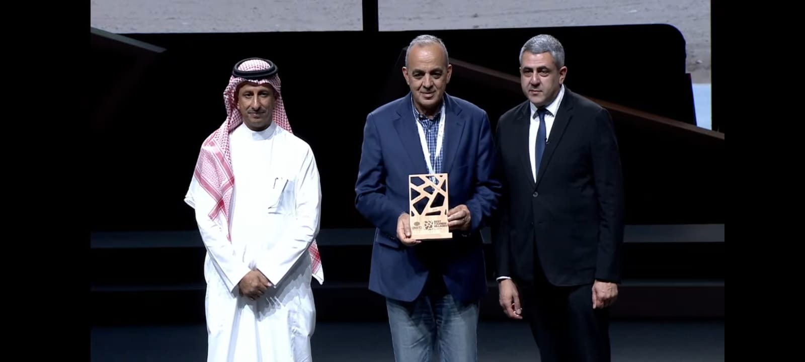 حجازين يتسلم درع جائزة اختيار قرية ام قيس ضمن افضل القرى السياحية في العالم