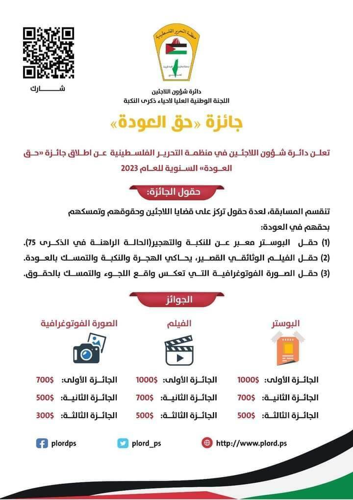 الإعلان عن جائزة "حق العودة" السنوية للعام 2023