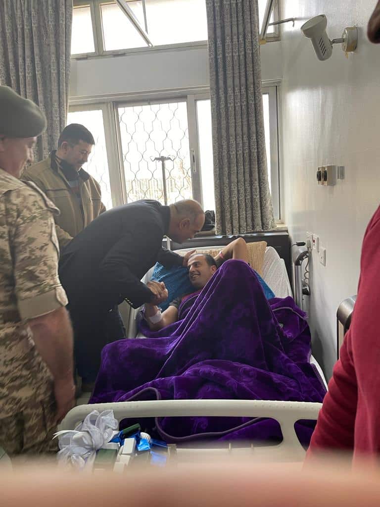 رئيس الوزراء الدكتور بشر الخصاونة يعود المصابين من مرتبات الأمن العام
