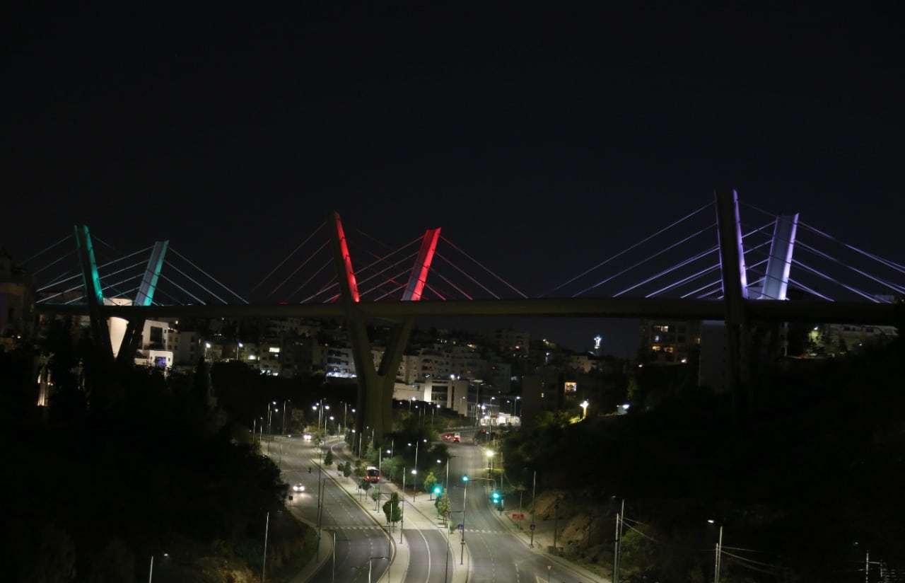 أمانة عمان تضيء جسر عبدون بألوان العلم العُماني