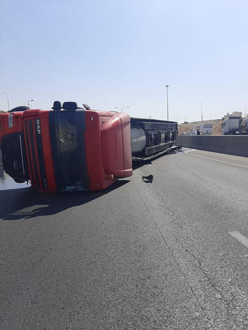 الأشغال: إغلاق مسرب من طريق المطار إثر تدهور مركبة شحن