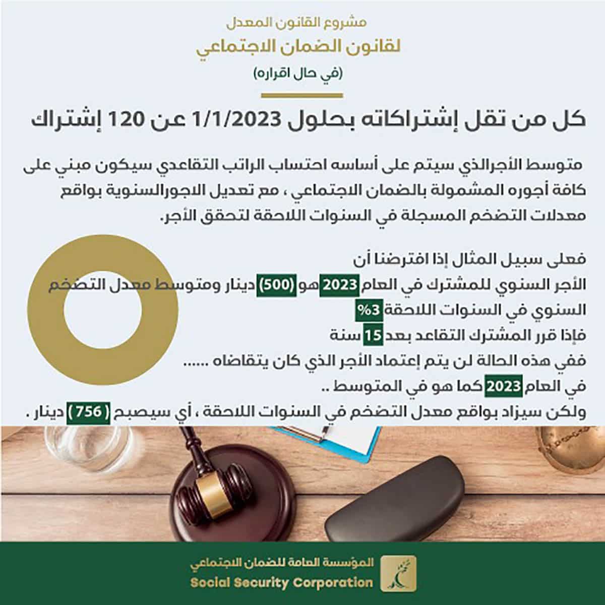 الضمان توضح آلية احتساب الراتب التقاعدي وفق مشروع القانون المعدل