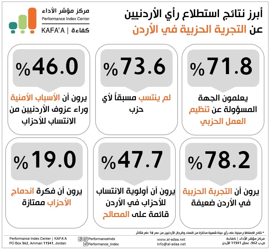 استطلاع: 47.7% من الأردنيين يعتقدون أن المصالح تشكل أولوية للانتساب إلى الأحزاب