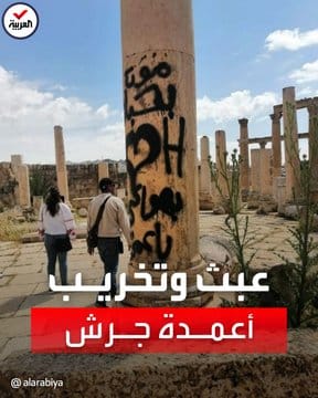 طلاء ورسوم.. تشويه أعمدة جرش يغضب الأردنيين
