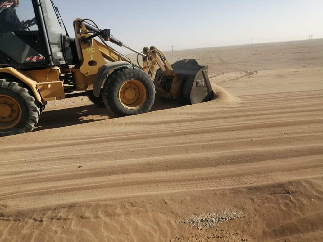الأشغال تتعامل مع تجمع للرمال على جوانب طريق الجفر - المدورة