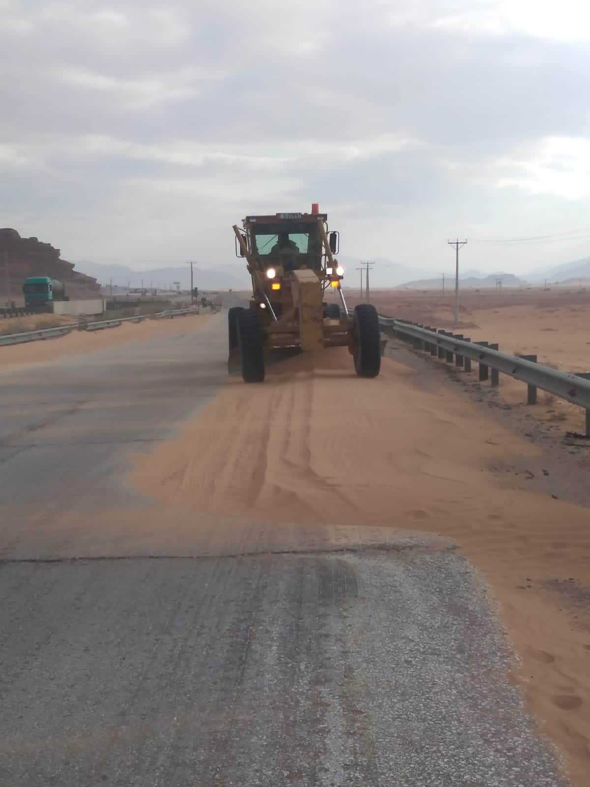 تنظيف الرمال المتحركة على طريق القويرة.. صور