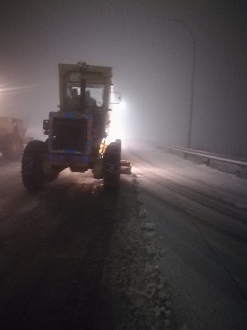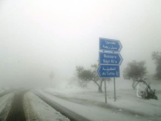 آليات وزارة الاشغال تواصل عملها بالتعامل مع تراكمات الثلوج الخفيفه في الطفيلة