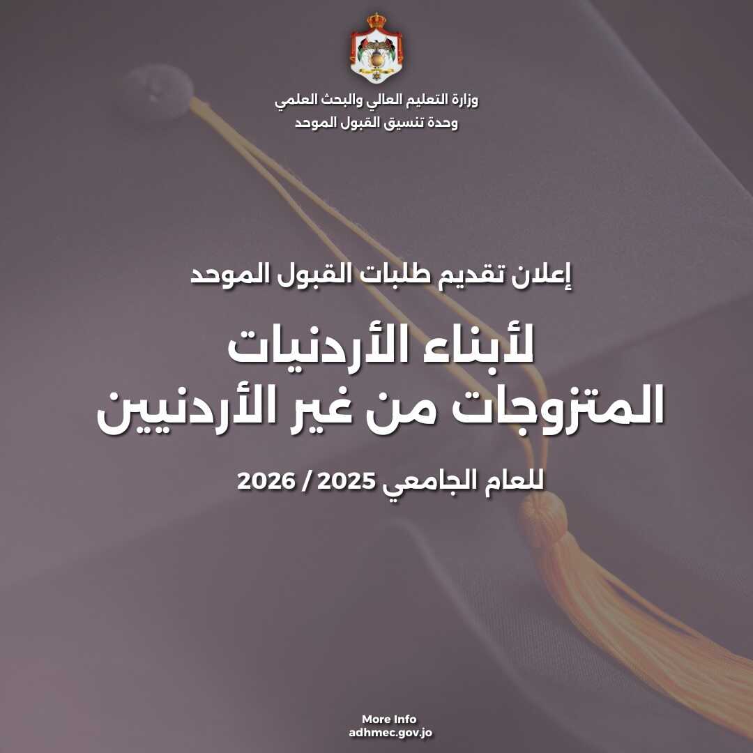بدء تقديم طلبات الالتحاق بالجامعات الأردنية لأبناء الأردنيات اعتباراً من اليوم