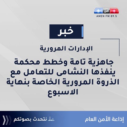 الإدارات المرورية : جاهزية تامة للتعامل مع الذروة المرورية الخاصة بنهاية الأسبوع .