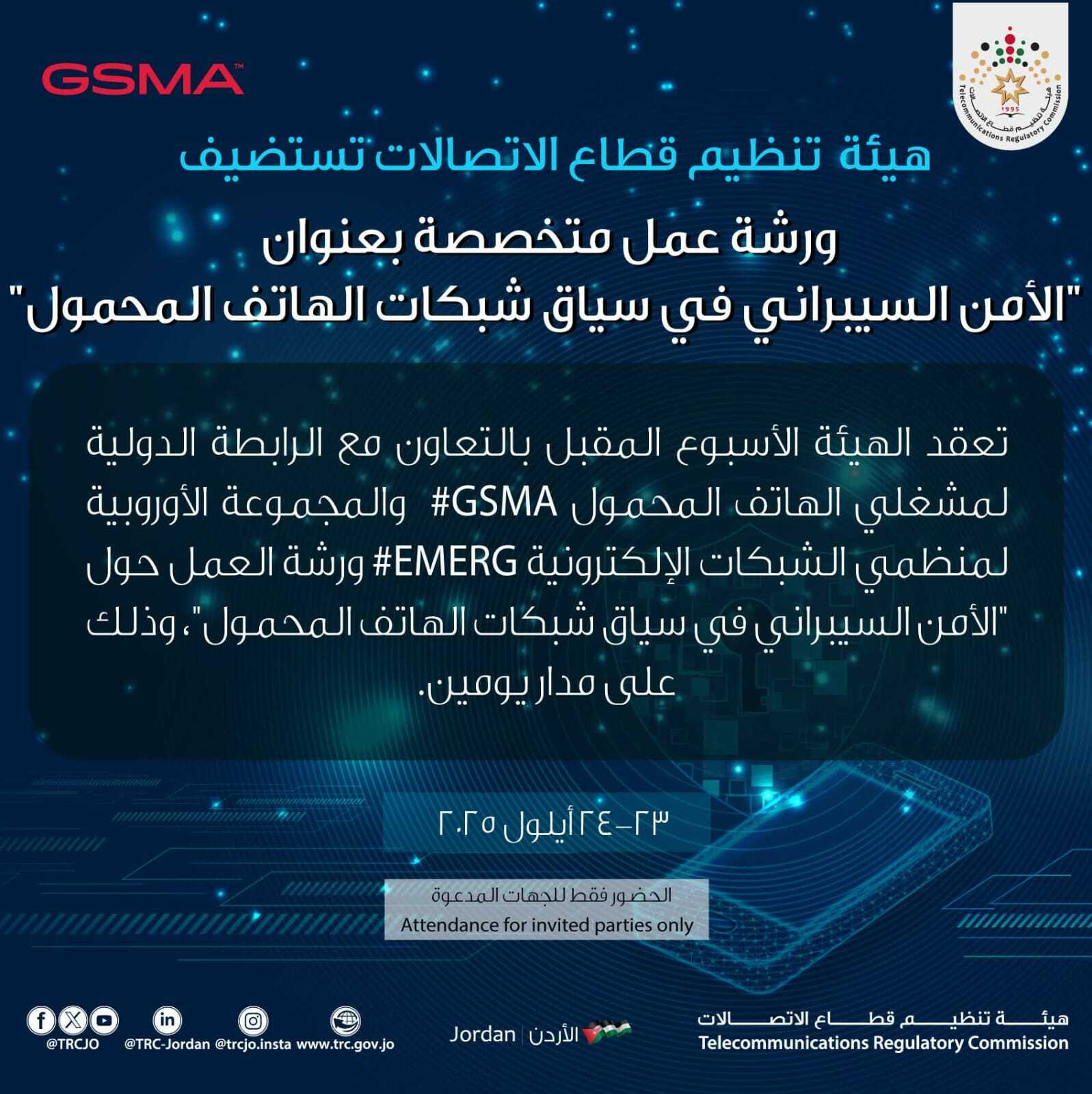 هيئة تنظيم الاتصالات تستضيف فعاليات ورشة العمل المتخصصة في الامن السيبراني الأسبوع المقبل