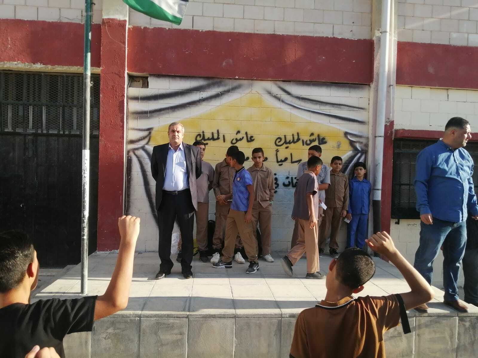 المصري تشارك طلبة دير يوسف فعاليات الطابور الصباحي