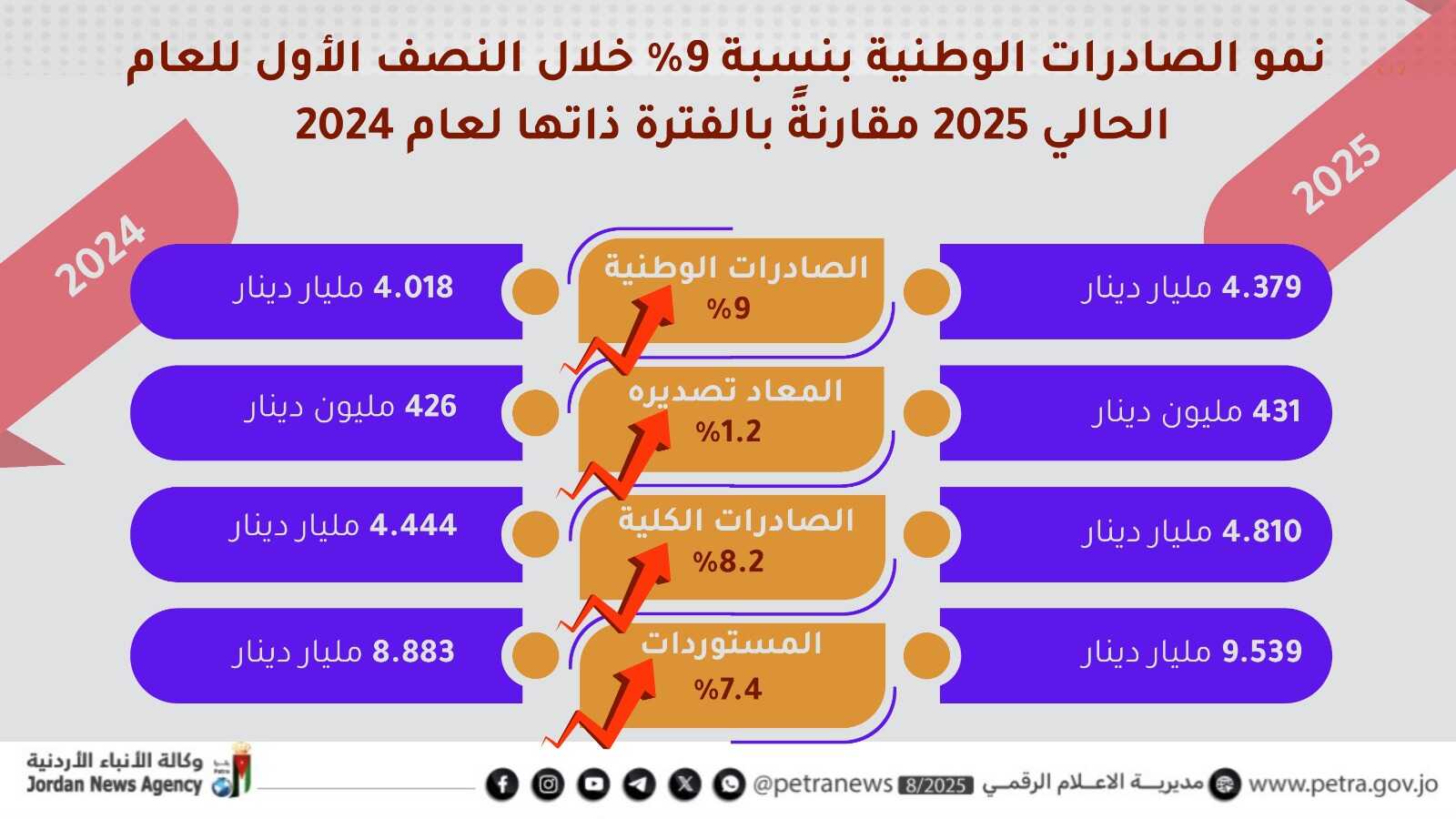 نمو الصادرات الوطنية بنسبة 9% خلال النصف الأول للعام الحالي