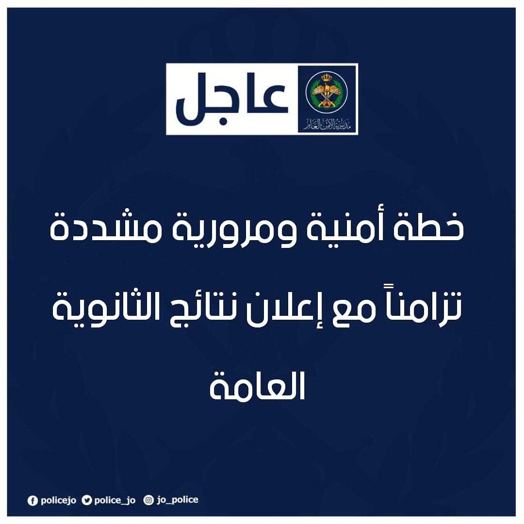 الأمن العام: خطة أمنية ومرورية مشددة تزامناً مع إعلان نتائج الثانوية العامة