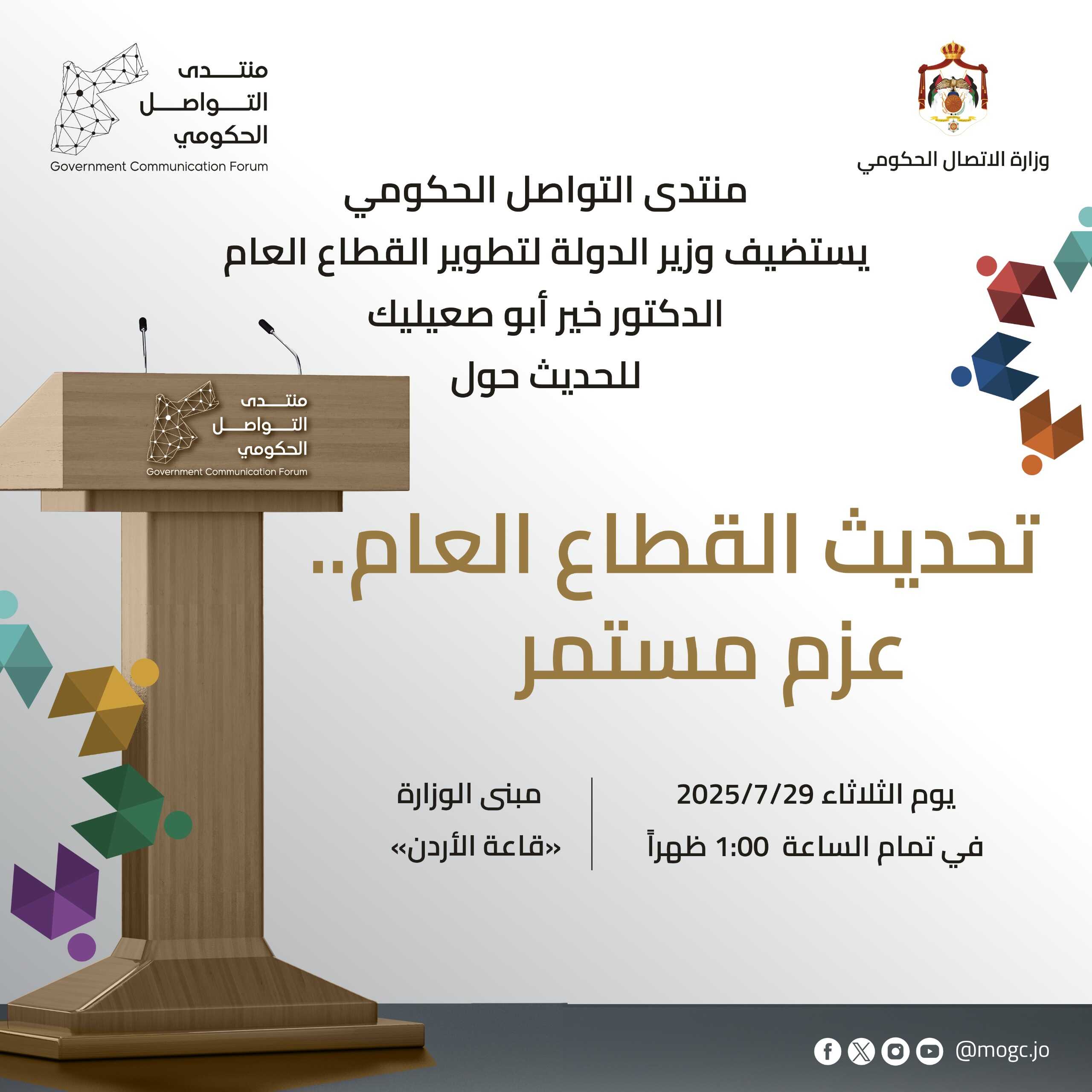 منتدى التواصل الحكومي يستضيف وزير الدولة لتطوير القطاع العام