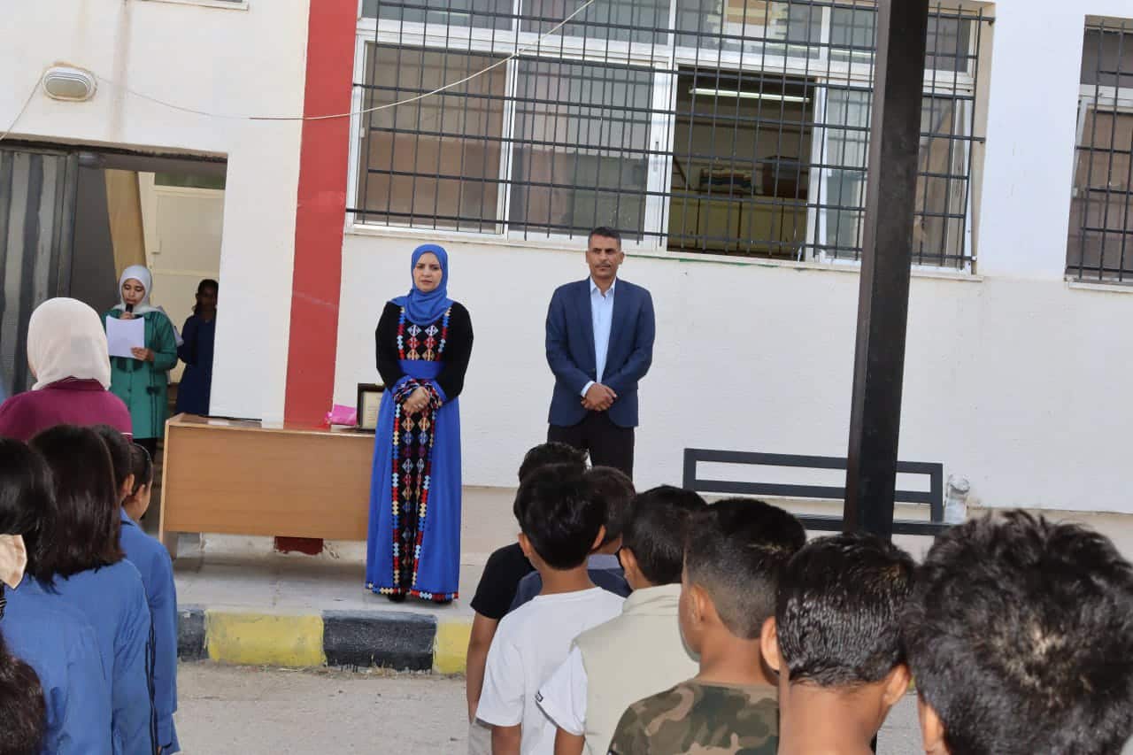 المساعيد يشارك طلبة مدرسة حي العرقوب فعاليات الطابور الصباحي ورفع العلم