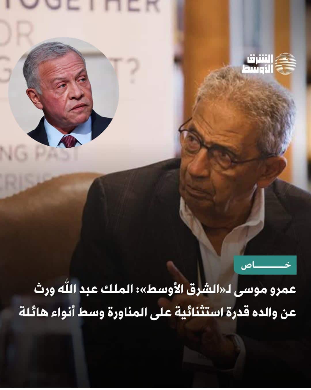 عمرو موسى: الملك عبدالله الثاني ورث عن والده قدرة استثنائية على المناورة السياسية