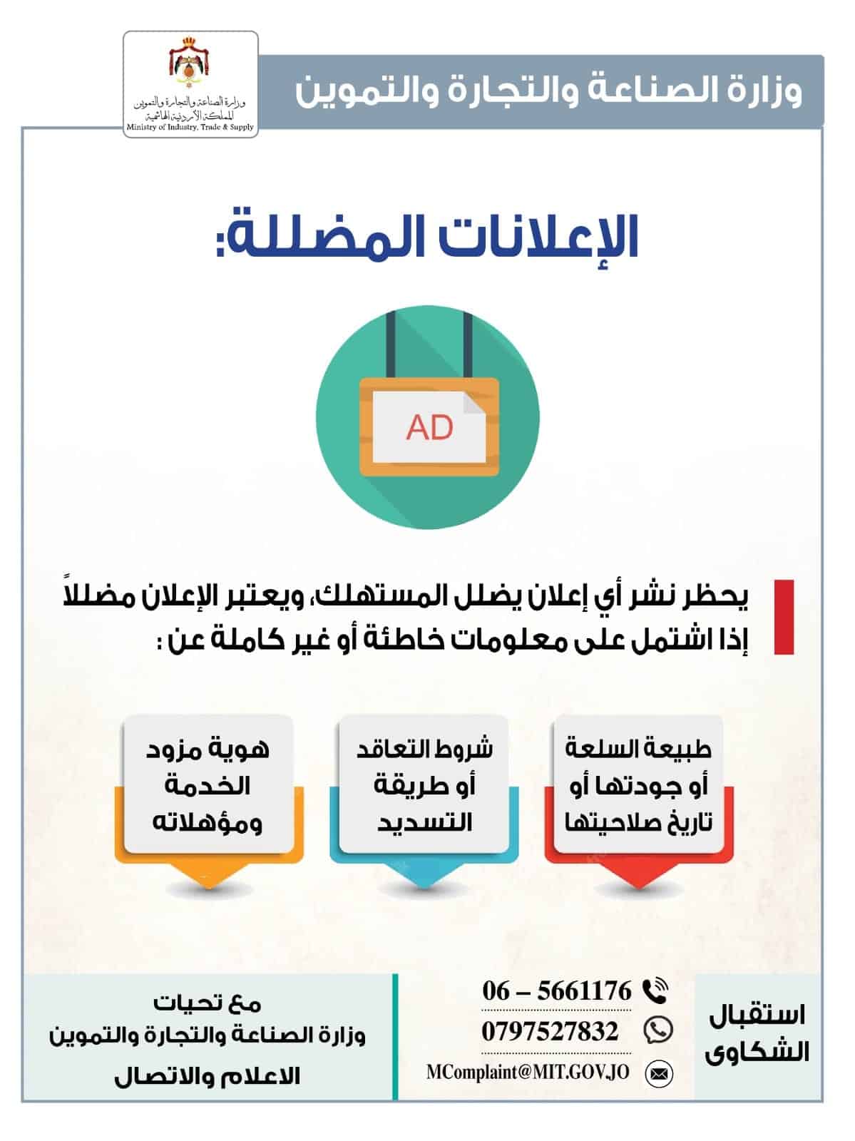 الصناعة والتجارة: يحظر نشر أي إعلان يضلل المستهلك
