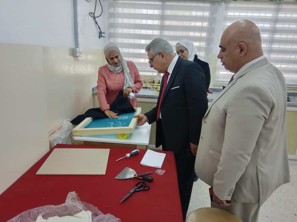 الخصاونة يتفقد مشاغل التعليم المهني ويلتقي أولياء الأمور في مدرسة قميم الثانوية للبنات.