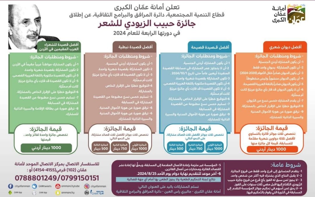 امانة عمان تطلق جائزة حبيب الزيودي للشعر 2024