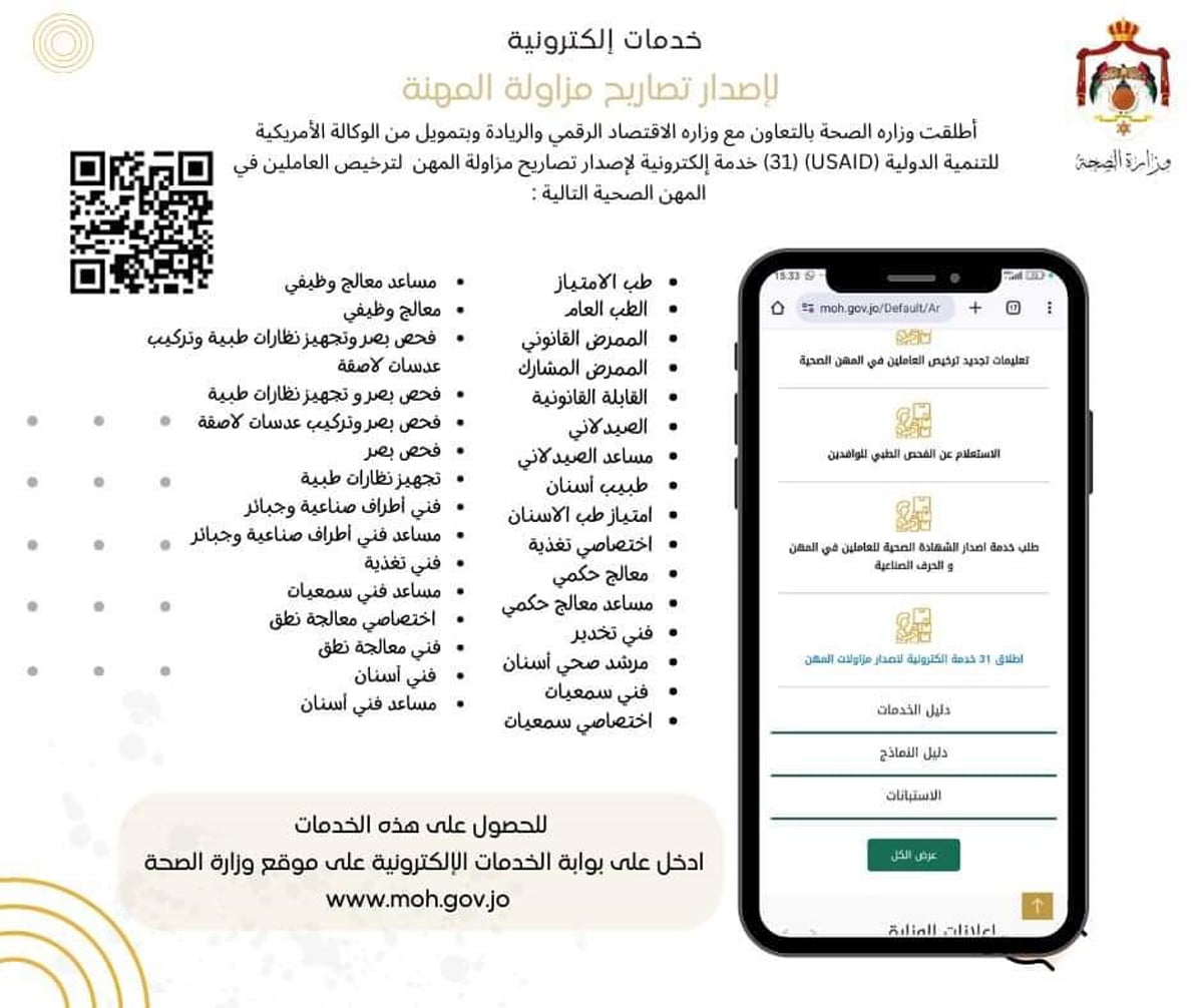 الصحة تطلق 31 خدمة إلكترونية لإصدار تصاريح مزاولة المهنة