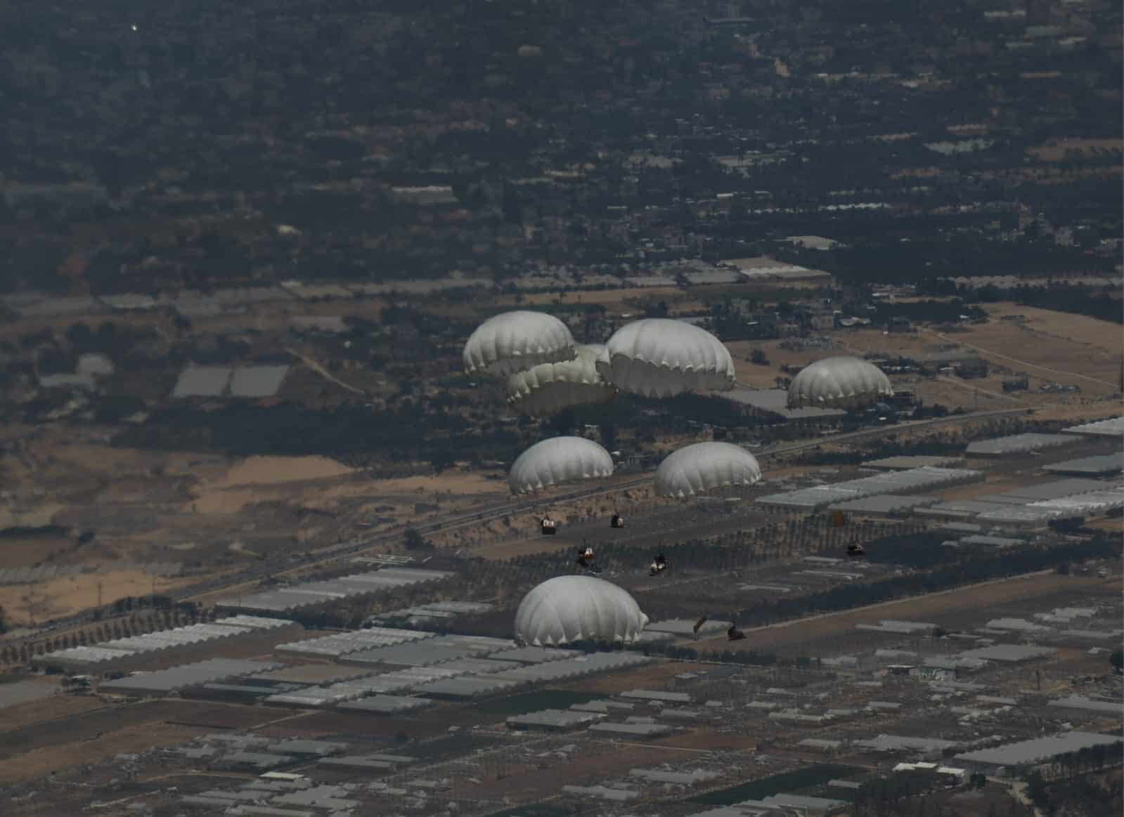 القوات المسلحة تنفذ إنزالين جويين لمساعدات على جنوب غزة