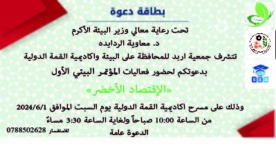 بتنظيم من جمعية اربد للمحافظة على البيئة انعقاد المؤتمر البيئي الاول "الاقتصاد الأخضر" في إربد