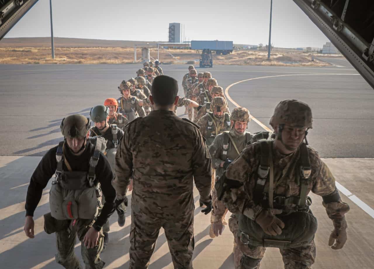 القوات الخاصة المشاركة بتمرين الأسد المتأهب تنفذ قفزة الصداقة