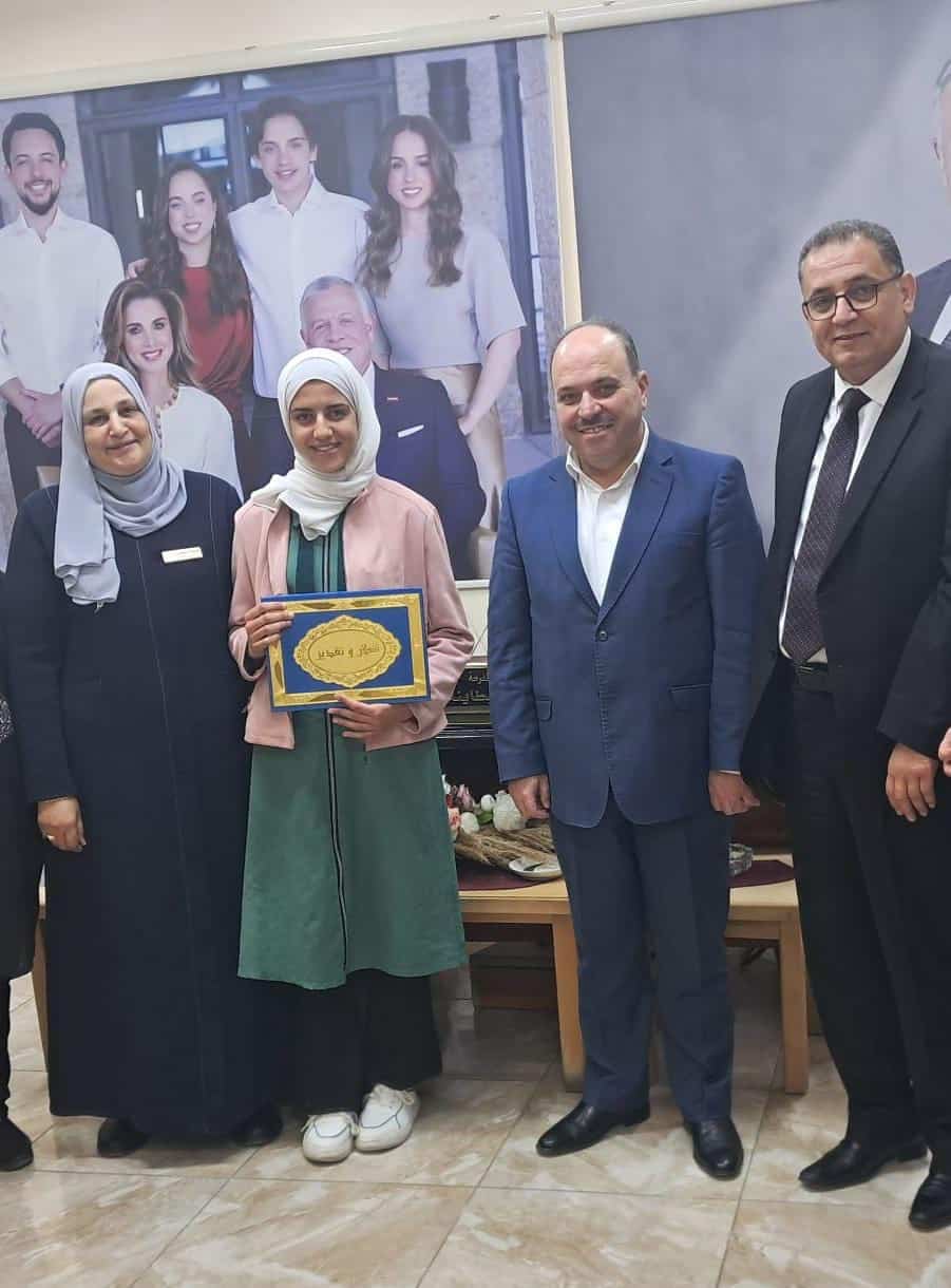 "الجراح يكرم الطالبة ارائك العمري لفوزها بالمركز الأول في مسابقة القرآن الكريم وتلاوته"