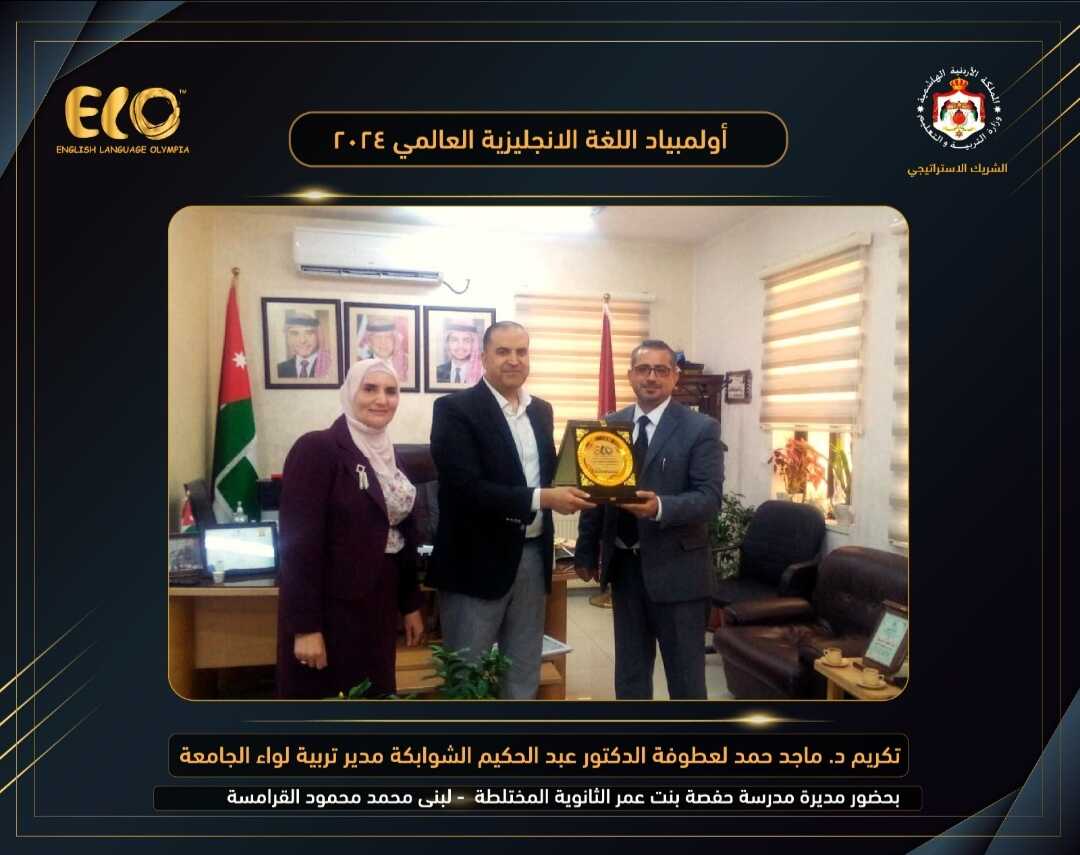 الشوابكة يكرم مدرسة حفصة بنت عمر الأساسية المختلطة لحصولهم على المركز الأول على مستوى العالم في أولمبياد اللغة الإنجليزية العالمي 2024 - ELO