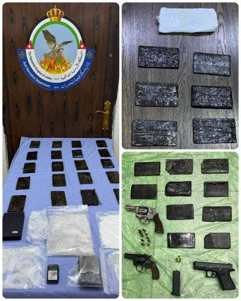 إدارة مكافحة المخدرات تلقي القبض على ثلاثة أشخاص على علاقات مع عصابات إقليمية لتهريب وتجارة المخدرات في قضيتين في الرويشد ومأدبا