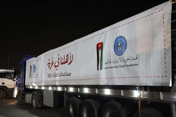 وصول قافلة المساعدات الأردنية الغذائية الأكبر إلى غزة بالتزامن مع عيد الفطر