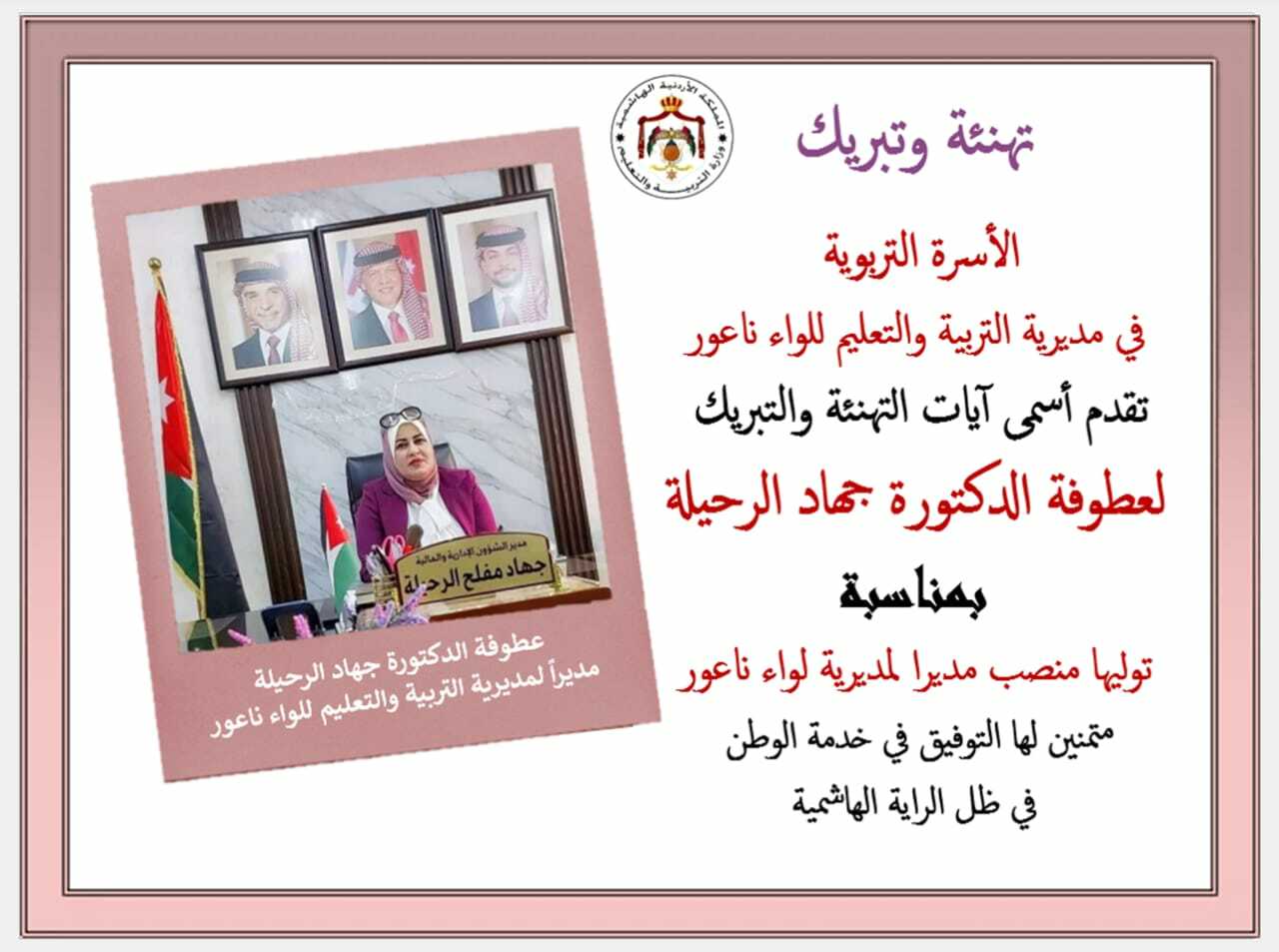 الرحيلة تباشر عملها قائما بأعمال مدير التربية والتعليم للواء ناعور