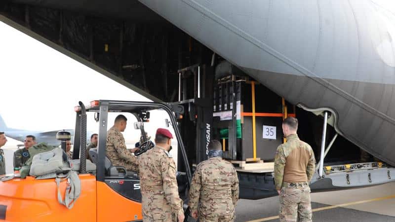 عملية أردنية هولندية مشتركة لإنزال مواد إغاثية على محيط المستشفى الميداني الأردني غزة 77