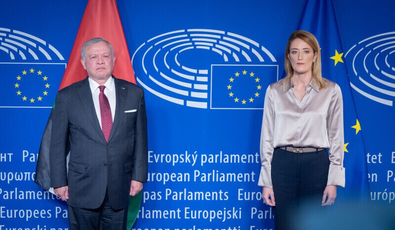الملك يلتقي رئيسة البرلمان الأوروبي ويحذر من الآثار الكارثية والتبعات طويلة المدى لحرب غزة