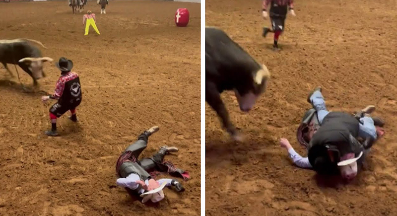 رجل يلقي بنفسه أمام ثور هائج لإنقاذ ابنه