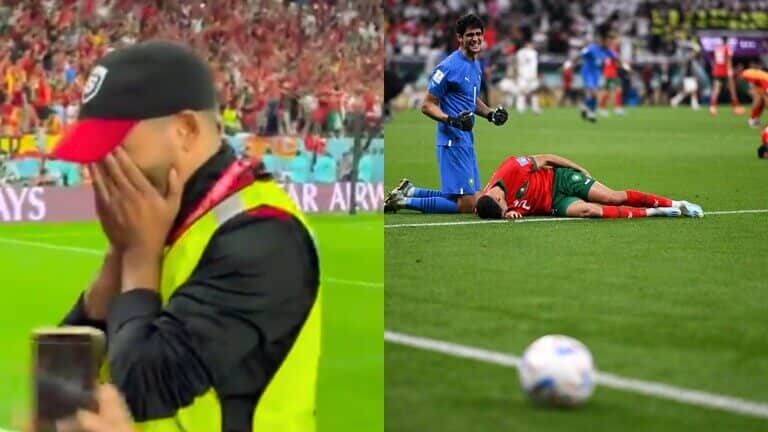 وظيفته تمنعه من الاحتفال.. عامل مغربي يبكي في صمت بعد تأهل "أسود الأطلس" (فيديو)