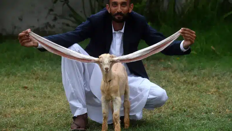ماعز صغير يثير الحيرة.. أذناه نمتا وتبلغان نصف متر