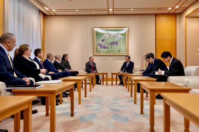 وبحثت اللقاءات أبرز المستجدات في الشرق الأوسط، إذ أكد جلالته ضرورة ضمان الالتزام باتفاق إنهاء الحرب في غزة وتعزيز الاستجابة الإنسانية، مثمنا موقف اليابان الداعم لهذه الجهود.