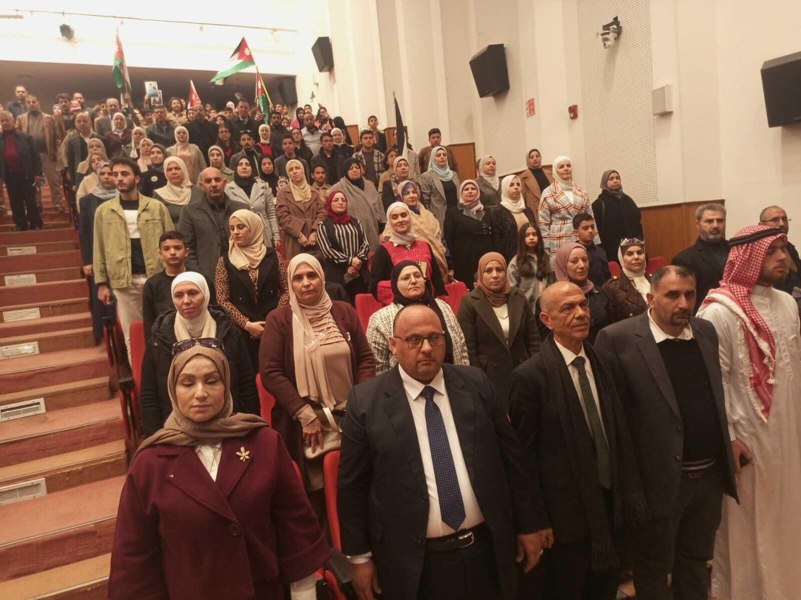 وفي سياق متواصل، واصلت المديرية فعالياتها بالاحتفال بعيد ميلاد الملك ٦٤ في مركز اربد الثقافي، فاستهل الاحتفال بالسلام الملكي والقرآن الكريم، وكلمة قدمها رئيس قسم التعليم الخاص، وكلمة ترحيبية لمديرة التربية، رحبت من خلالها بجميع الحضور الكرام، من مختلف المؤسسات الرسمية والمدنية، والفعاليات الشعبية، مؤكدة أن هذه المناسبة الوطنية تجسد أسمى معاني الفخر والاعتزاز بالقيادة الهاشمية، وهي تعبير صادق عن عهد الصدق والانتماء لمسيرة قوامها الحكمة وغايتها رفعة الوطن وكرامة الإنسان.
