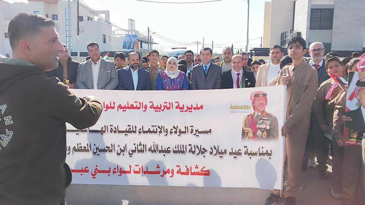 برعاية مديرة التربية والتعليم للواء بني عبيد السيدة نسرين البكار، ومساعد متصرف لواء بني عبيد الاستاذ عمر الخمايسة، نظمت مديرية التربية والتعليم للواء بني عبيد ، من خلال قسمي النشاطات التربوية والتعليم الخاص، مسيرة وطنية "مسيرة الولاء والانتماء للقيادة الهاشمية"، بمناسبة عيد ميلاد جلالة الملك عبدالله الثاني ابن الحسين الـ ٦٤، وذكرى الوفاء والبيعة الذي صادف يوم السابع من شباط، في مشهد وطني مهيب عكس عمق محبة الأردنيين لقائدهم والتفافهم حول القيادة الهاشمية.