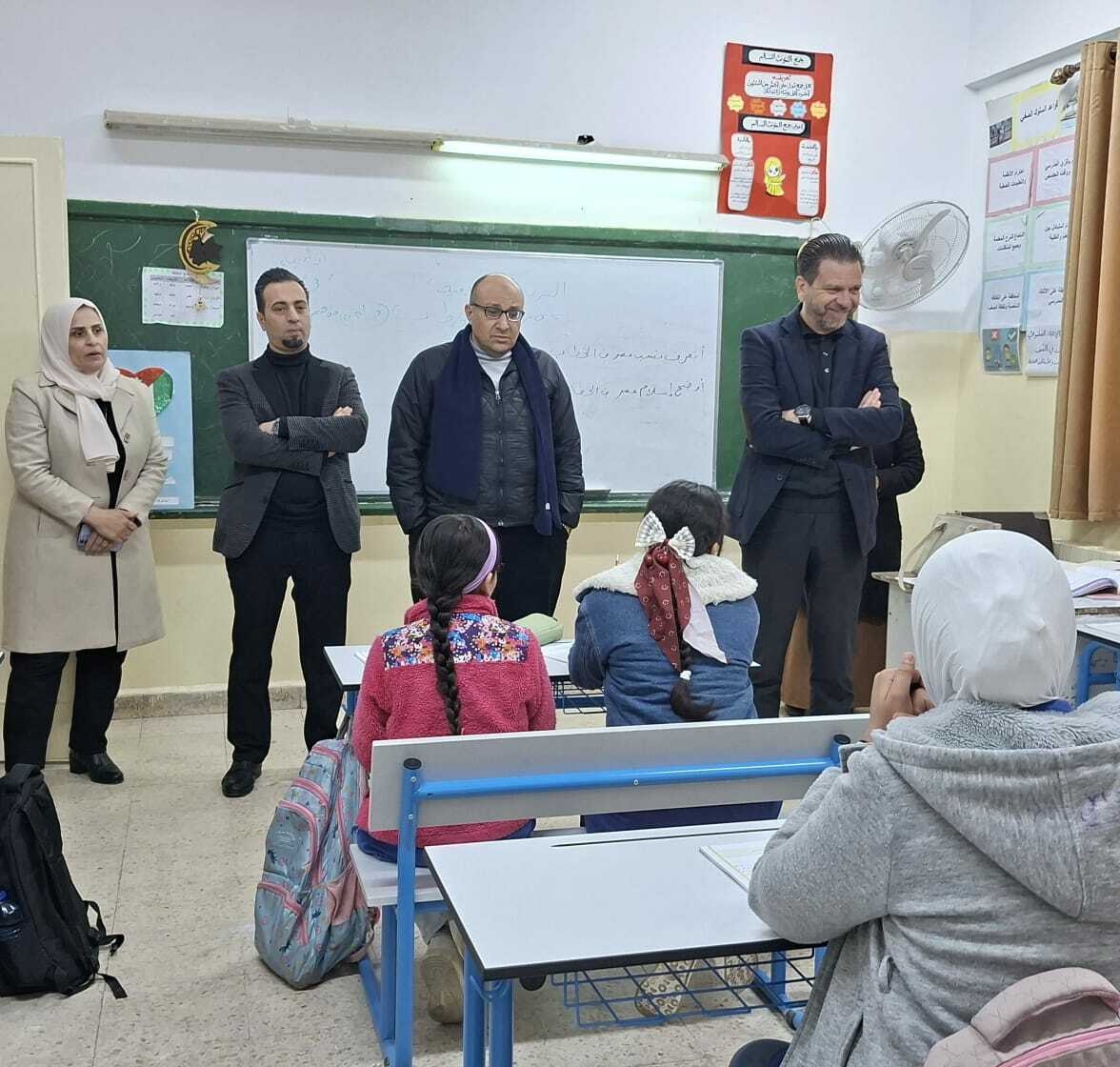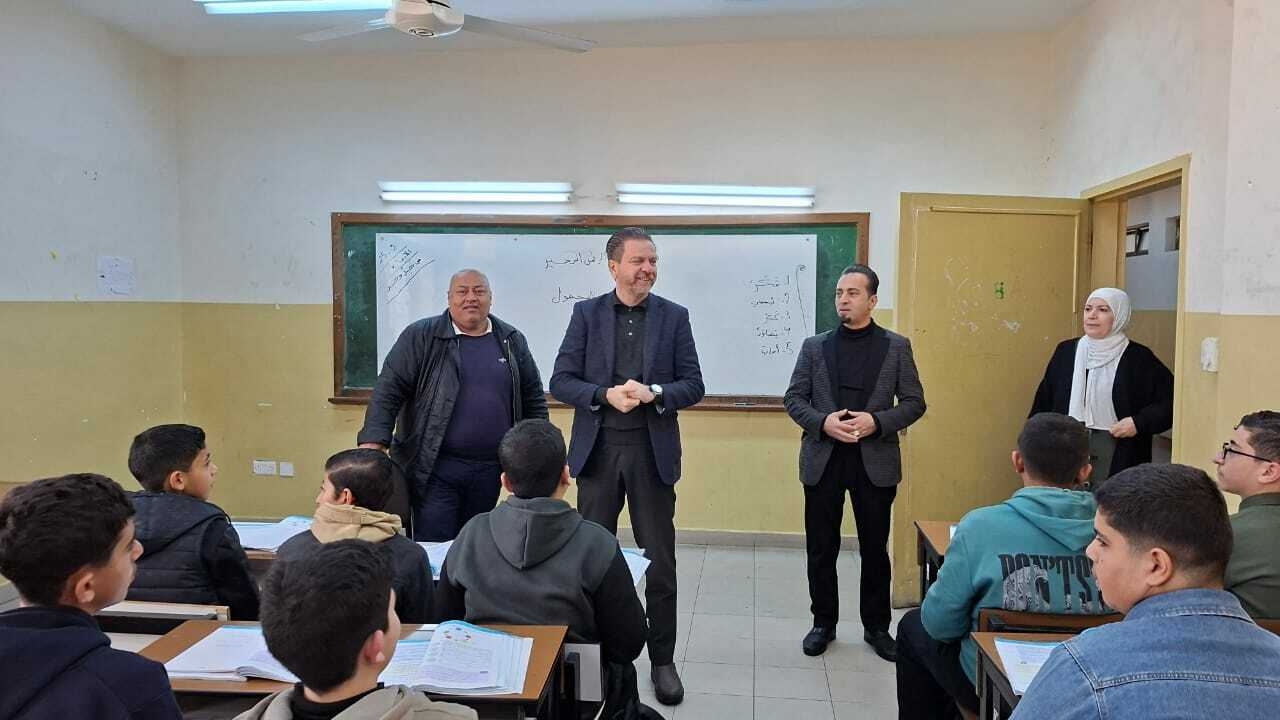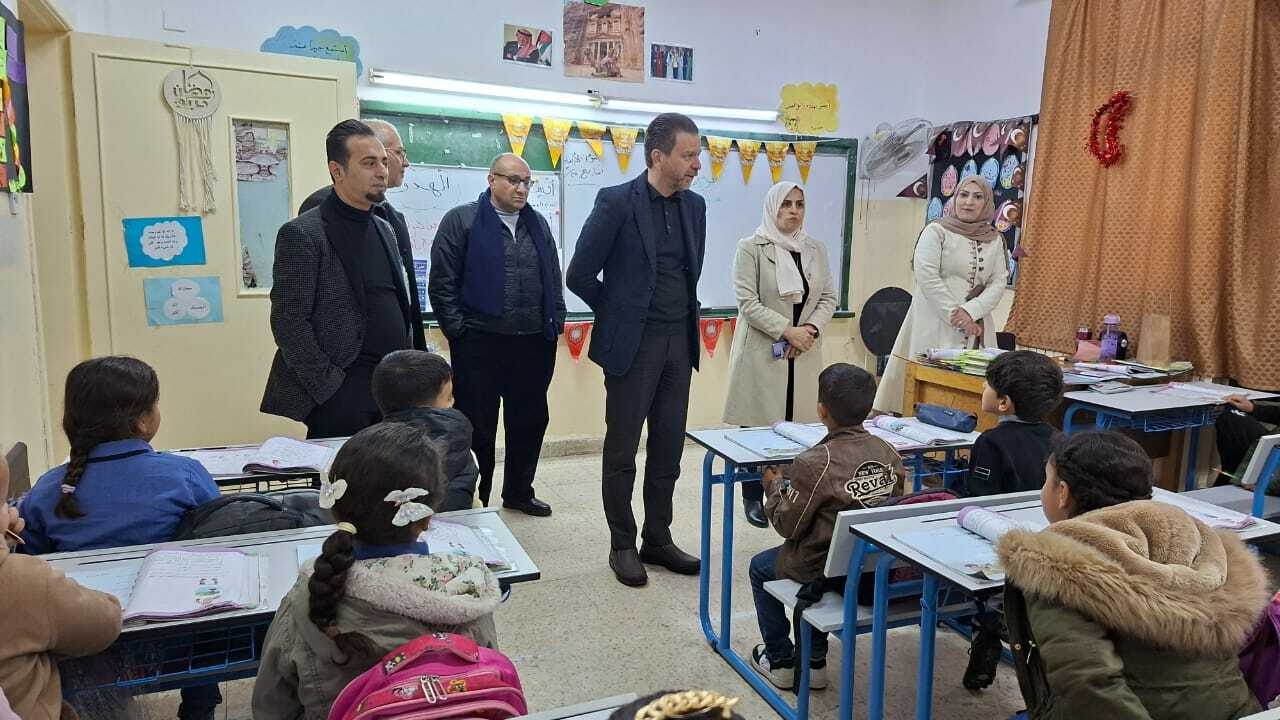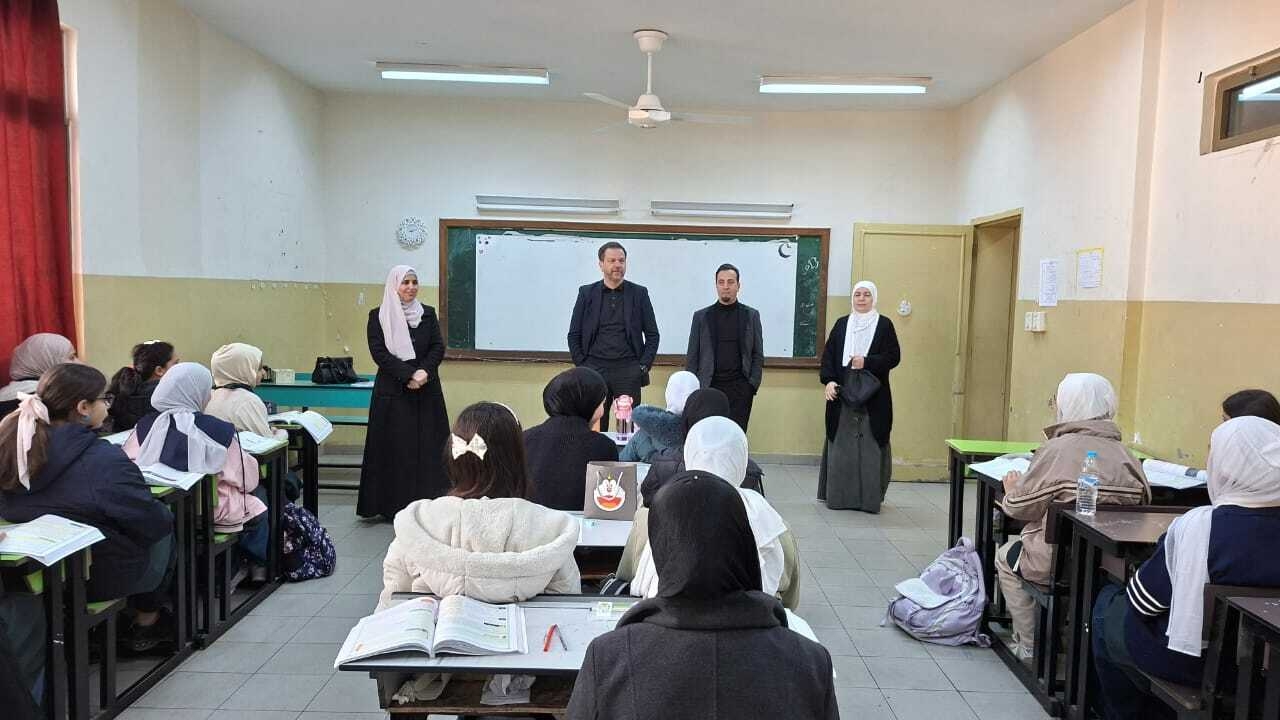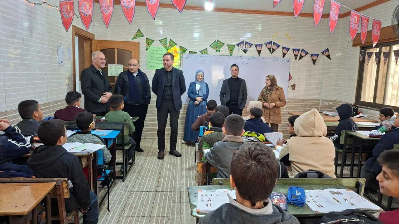 وتجول أبو عزام داخل الغرف الصفية، واطّلع على مجريات العملية التعليمية، حيث تابع تفاعل الطلبة داخل الحصص الدراسية ومستوى أدائهم، مؤكداً أهمية تكثيف الجهود للارتقاء بمستوى التحصيل الدراسي، وتعزيز مهارات الطلبة الأساسية، بما ينسجم مع خطط وزارة التربية والتعليم في تطوير التعليم.