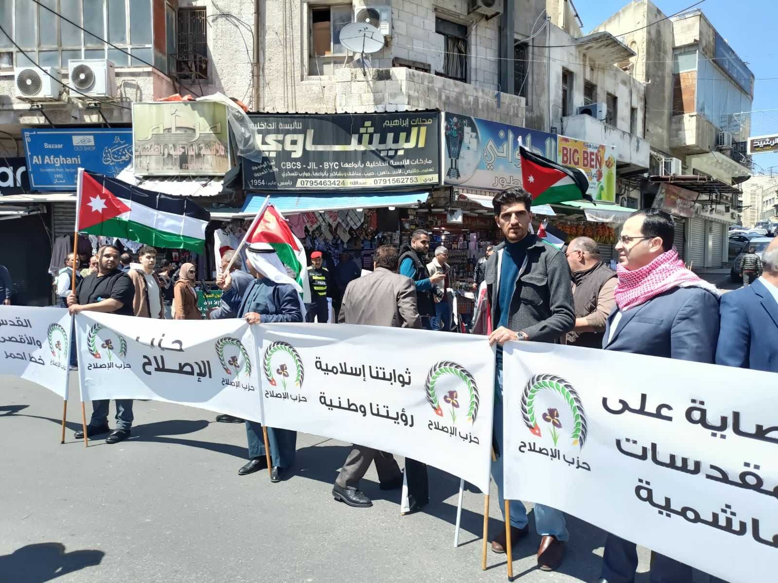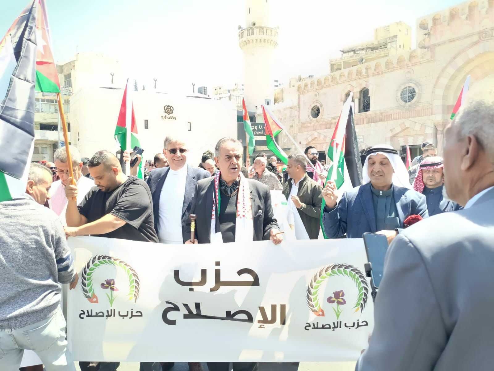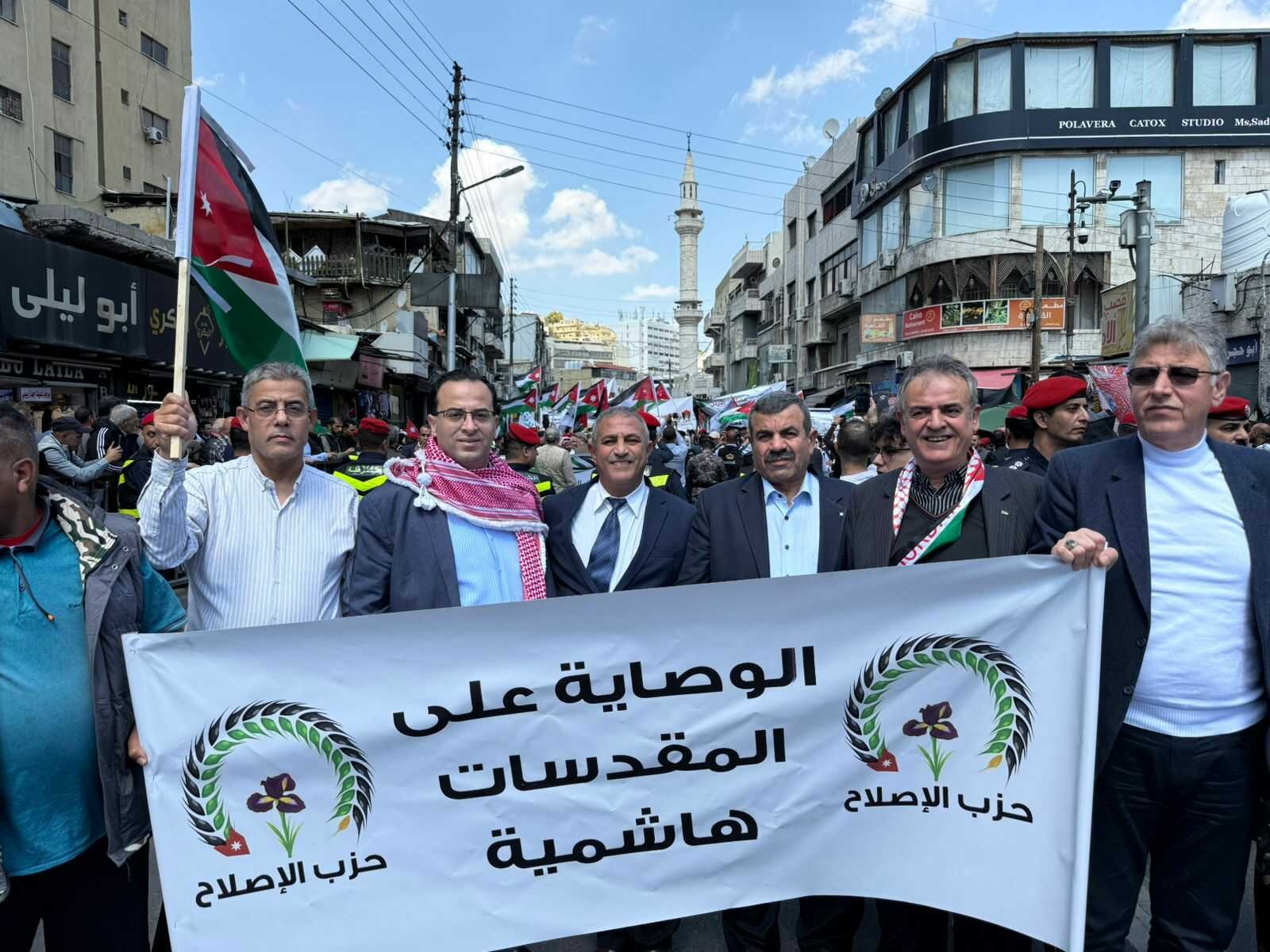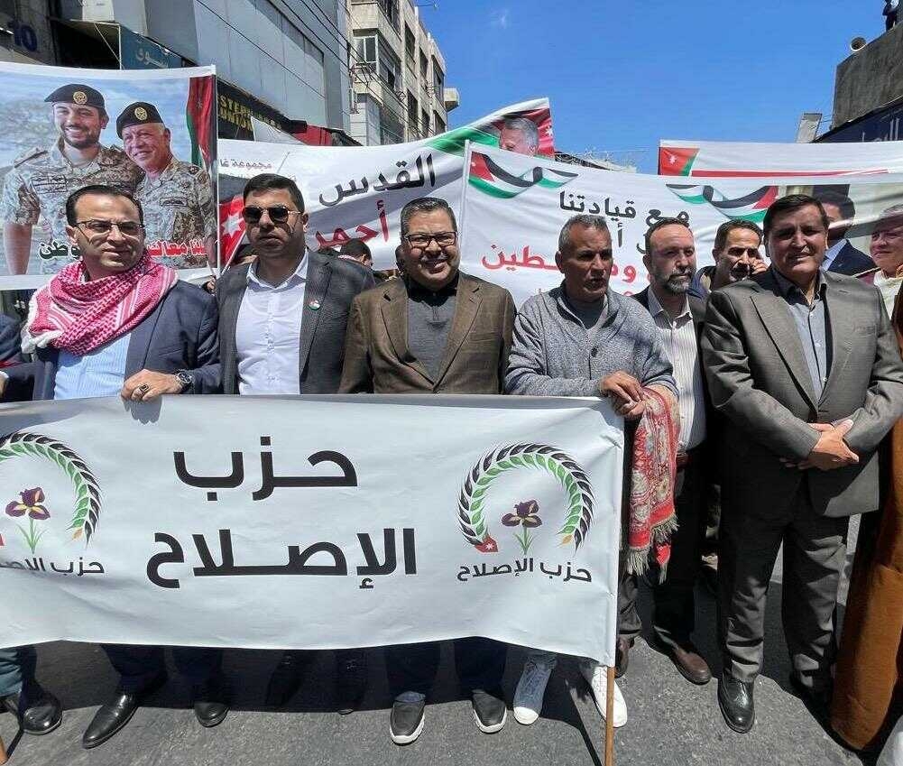 شارك حزب الإصلاح بقيادته ونوابه وكافة فروعه وأعضائه من مختلف محافظات المملكة في المسيرة المركزية التي انطلقت تأكيداً على دعم الوصاية الهاشمية على المقدسات الإسلامية والمسيحية في القدس الشريف