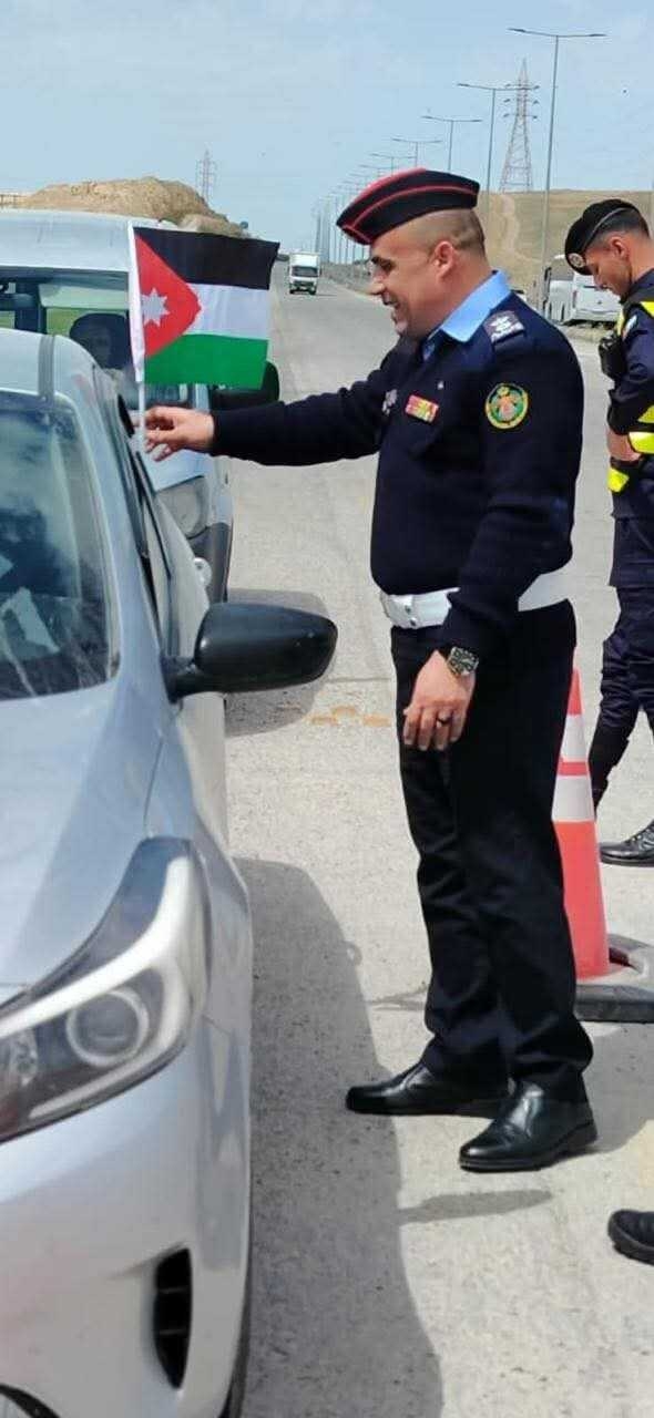 شاركت إدارة الدوريات الخارجية، بكافة مرتباتها، في الاحتفال بيوم العلم الأردني، من خلال تنفيذ مبادرة وطنية تمثلت بتوزيع الأعلام الأردنية والملصقات على المركبات في مختلف الطرق الخارجية.