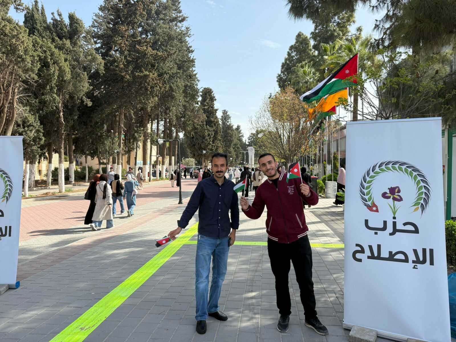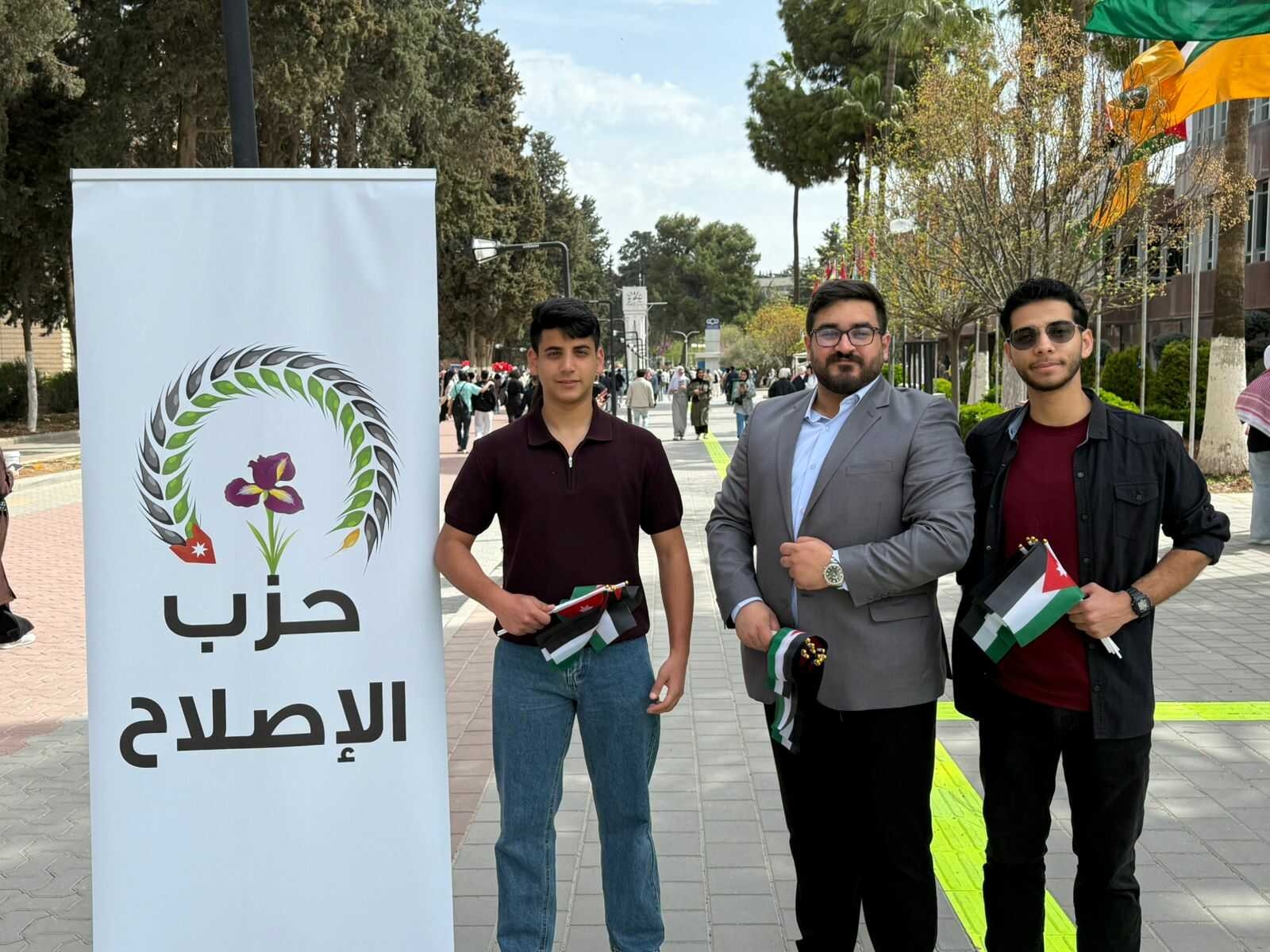 بمناسبة يوم العلم الأردني أطلق شباب حزب الإصلاح مبادرة وطنية من داخل حرم الجامعة الأردنية لتوزيع الأعلام الأردنية على الطلبة في مشهد يجسد معاني الانتماء والاعتزاز بالهوية الوطنية
